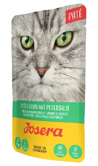 Josera Paté додає різноманіття до раціону Твого улюбленця. Ці збалансовані паштети містять м'ясні складові вищої якості, а також всі необхідні поживні речовини для повноінного здорогвого харчування Твого котика. Отже, наш Josera Paté - це повноцінний корм, який забезпечує всебічний догляд за Твоїм котом на кожен день. Виключно якісні, натуральні і корисні інгредієнти Не містить соєвого та глютенового зерна Не містить штучних барвників, ароматизаторів та консервантів Не містить пальмового масла, цукру або молочних продуктів Повноцінний корм для дорослих котів.