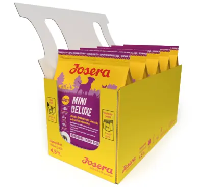 JOSERA MiniDeluxe цей корм пропонує нашим маленьким шибеникам смачну та водночас дуже добре перетравну їжу без зернових, замість цього з овочами, травами та плодами і великою кількістю м’яса ягня. Виготовляється в Німеччині та проходить ретельну перевірку у власній акредитованій лабораторії. Корм містить високоякісні, здорові та натуральні інгредієнти, які не є генетично модифікованими. БЕЗ додавання консервантів, штучних барвників та ароматизаторів. Сухий корм для собак Josera не випробовується на тваринах. БЕЗ додавання пшениці, сої, цукру і молочних продуктів. Повноцінний сухий корм для дорослих собак.