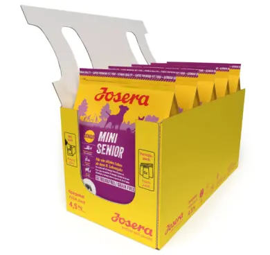 JOSERA MiniSenior насолода кормом також у старшому віці: Цей корм спрямований на потреби наших улюблених малюків у старшому віці, з травами, плодами та кращими складовими. Виготовляється в Німеччині та проходить ретельну перевірку у власній акредитованій лабораторії. Корм містить високоякісні, здорові та натуральні інгредієнти, які не є генетично модифікованими. БЕЗ додавання консервантів, штучних барвників та ароматизаторів. Сухий корм для собак Josera не випробовується на тваринах. БЕЗ додавання пшениці, сої, цукру і молочних продуктів. Повноцінний сухий корм для дорослих собак.