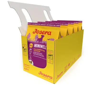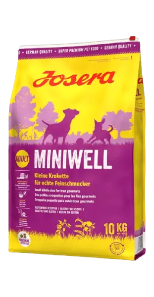 JOSERA Miniwell особливий корм для дорослих собак - для наших маленьких «дзиґ», яким вже не треба ховатися від великого! Маленькі крокети надають більшу насолоду, у комбінації з найкращими компонентами для гарної шкіри та блискучої шерсті. Виготовляється в Німеччині та проходить ретельну перевірку у власній акредитованій лабораторії. Корм містить високоякісні, здорові та натуральні інгредієнти, які не є генетично модифікованими. БЕЗ додавання консервантів, штучних барвників та ароматизаторів. Сухий корм для собак Josera не випробовується на тваринах. БЕЗ додавання пшениці, сої, цукру і молочних продуктів. Повноцінний сухий корм для дорослих собак.